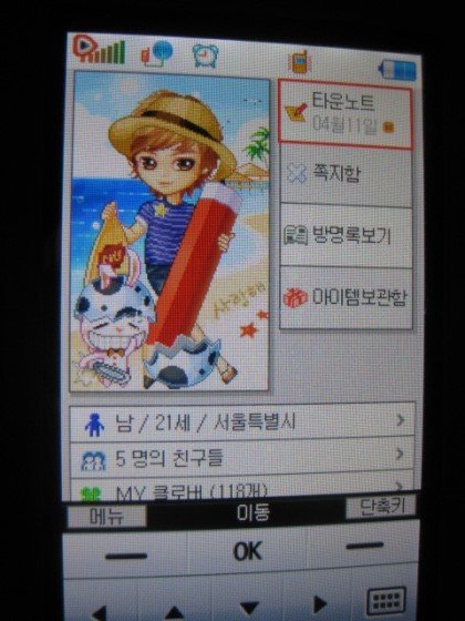 요것은 방금 홈에서 '내폰피' 를 누르면 저렇게 자신이 꾸민 캐릭터와 함께 쪽지함이나 방명록등이 나와요