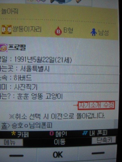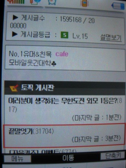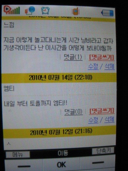 이 사진은 제기억으론 핸드폰에서 숫자키 위에 동그란 가운데 버튼을 누루면 나오는걸로 기억하고 있어요.