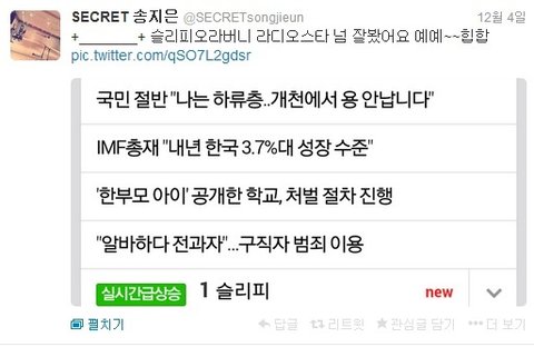 라디오스타에 슬리피 나와서 ㅋㅋ 실검 일위한거 캡쳐해서 인증함 ㅋㅋㅋㅋㅋ