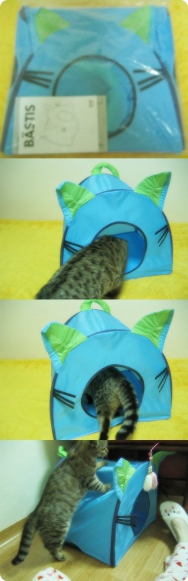 하지만 다른 고양이들과 달리 상자나 바구니,하우스처럼