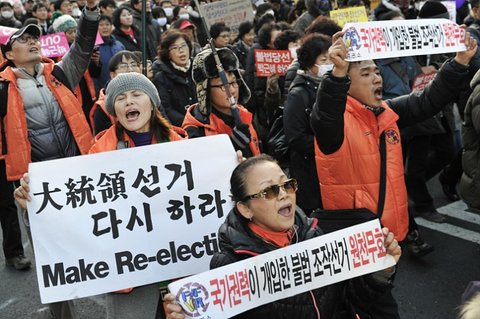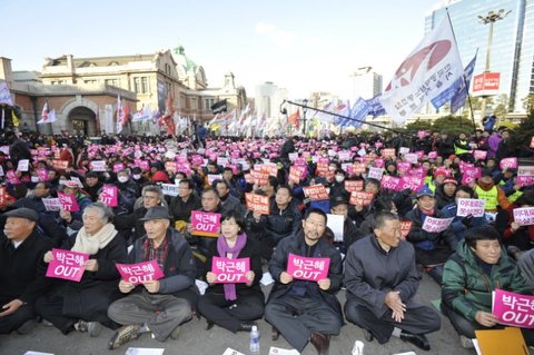 박근혜 정권 규탄 비상시국대회가 7일 오후 서울역에서 열렸다. 이날 대회엔 1만 통합진보당 당원들을 비롯해 3만 여 시민이 함께 했다. 참가자들은 △관권 부정선거 은폐시도, △ 진보당 강제해산 시도, △전교조 법외노조화, △공무원노조 탄압 등을 규탄하며 “박근혜 정권이 집권 1년동안 민주주의를 파괴하고, 유신을 부활시키고 있다”고 비판했다.