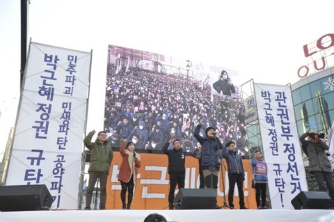 참가자들은 또 △경제민주화 공약이 친재벌 정책으로 파기 대체되고, △대선당시 민생 공약은 무기한 연기되거나 크게 후퇴했으며, △삼성전자서비스에서 자살한 노동자 최종범씨 문제를 비롯해 쌍용차, 용산, 강정, 밀양, 장애인 문제 등이 해결되지 못하고 있고, △철도 가스등 공공부문의 민영화가 진행되고, △언론 장악에 따른 여론 조작이 시도되고 있다고 규탄했다.