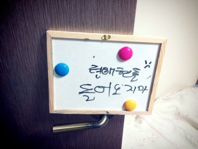 ㅋㅋㅋㅋㅋㅋㅋ채은이가 현태현호한테 화나서 문앞에 이렇게 써놓았어요.