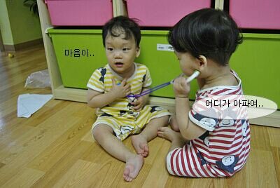큰애 현태에용ㅎㅎ애들이 얼굴이 많이 다른데 다른사람들은 구별을 못하더라고요!