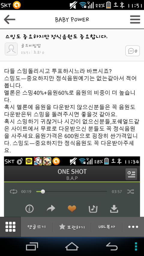 뭐랄까 최대한 말투 동글게하면서 예의바르게ㅡ쓰느라 이상하게 적은것같다ㅠㅠ혹시 멜론에서 음원 다운안받았으면 꼭 다운받아라ㅇㅇ