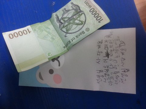 "제가 아주 힘~~들게 힘들게 6만원을 용돈으로 모았는데요. 저한테 정말 소중한거니까 선생님도 좋아할것 같아서요."
