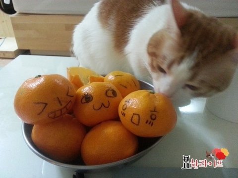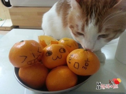 고양이들이 보통 귤의 향기를 싫어하는다는데...