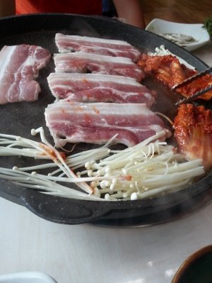 아침부터 삼겹살에 소주한잔먹고 점심때 집에들어갔어요