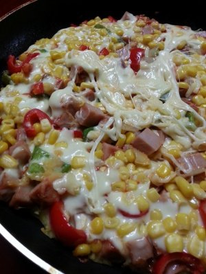 어제 일요일에 동생들이랑 만들어먹은 떠먹는 피자 ^^
