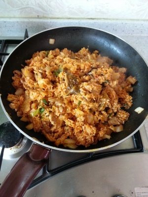 김치볶음밥 재료 볶을때 찍어봤어요..