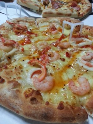 동생님이 시켜주신 피자 ^^^ 새우새우새우 ㅠㅠ 새우가 너무 작았어요..