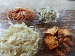 오뎅볶음, 버섯볶음, 감자채, 두부조림