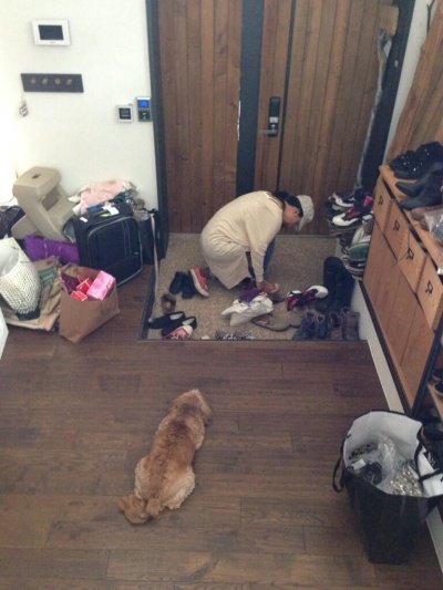 엄마 외출한다고 하면 이렇게 시무룩하게 대문만 바라볼 뿐...