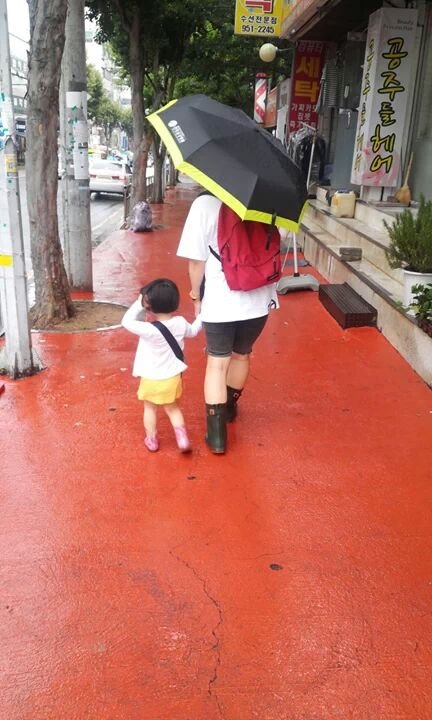 비오는 날이니까 이모와 다.정.하.게 우산쓰고 가는 사진투척(집에오니 우주의 어깨는 홍수가.....)