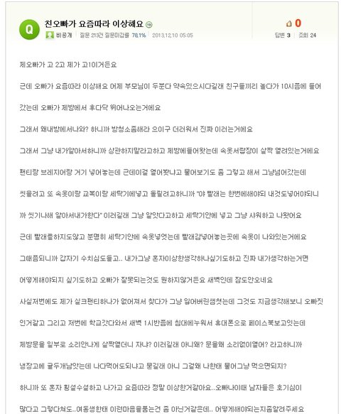 지식인캡쳐 친오빠가 요즘따라 이상해요..(충격주의)