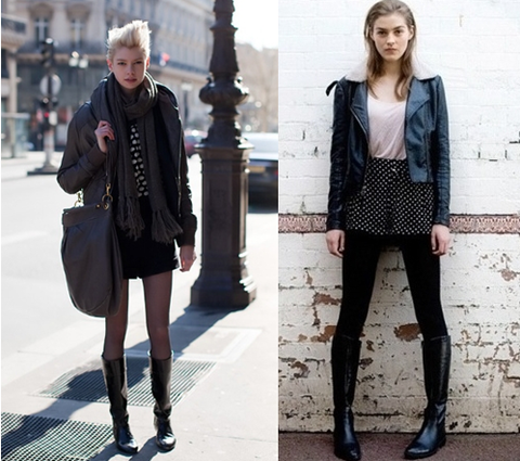 또한 박시한 상의, 짧은 하의에 타이트한 가죽 롱부츠를 매치한다면 섹시한 연출도 가능하죠!