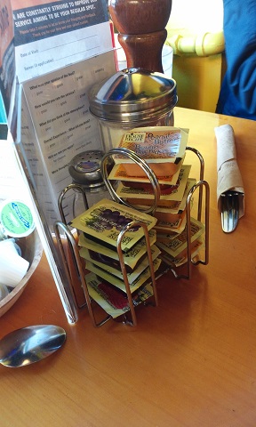 테이블 한켠에는 여러종류의 잼, 피넛버터와 메이플시럽, 크림과 슈가 등이 준비되어 있었어요.