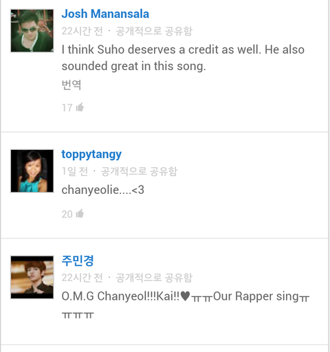 댓글보면 찬열이랑 종인이이야기가 대부분이야