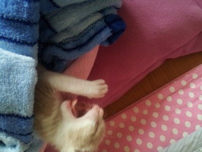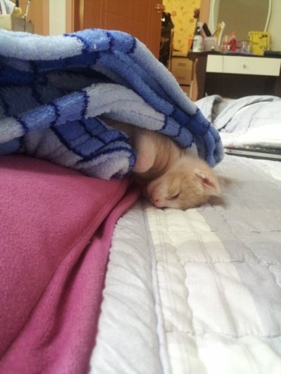 어미한테 있었음 어미품에 안겨있을텐데 맨날 담요에 쌉니다 ![]()