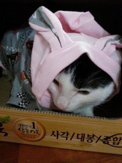 여튼 다른집 고양이들도 옷입히나요? 입히면 한번 우리 서로 자랑해봅시다