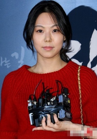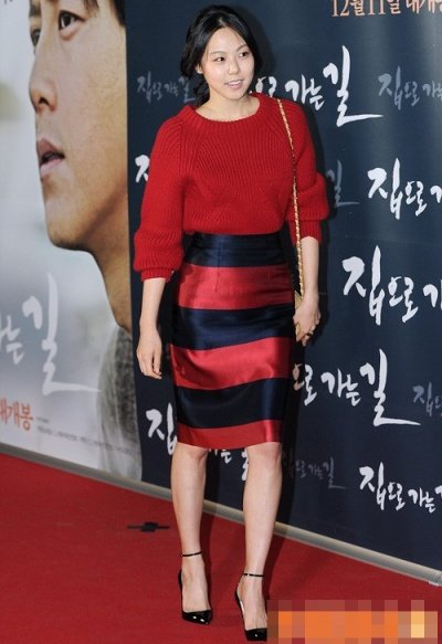 타이트한 에이치라인 스커트에 니트를 넣어 입은 김민희
