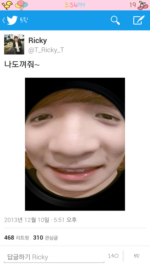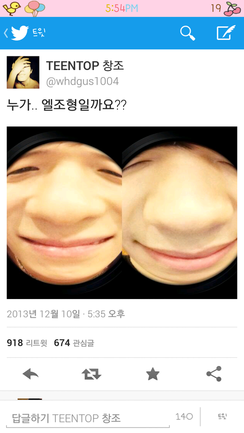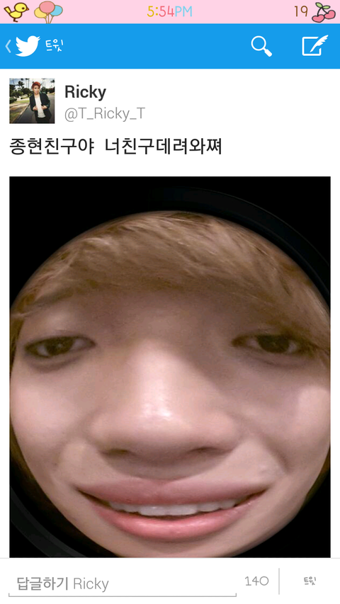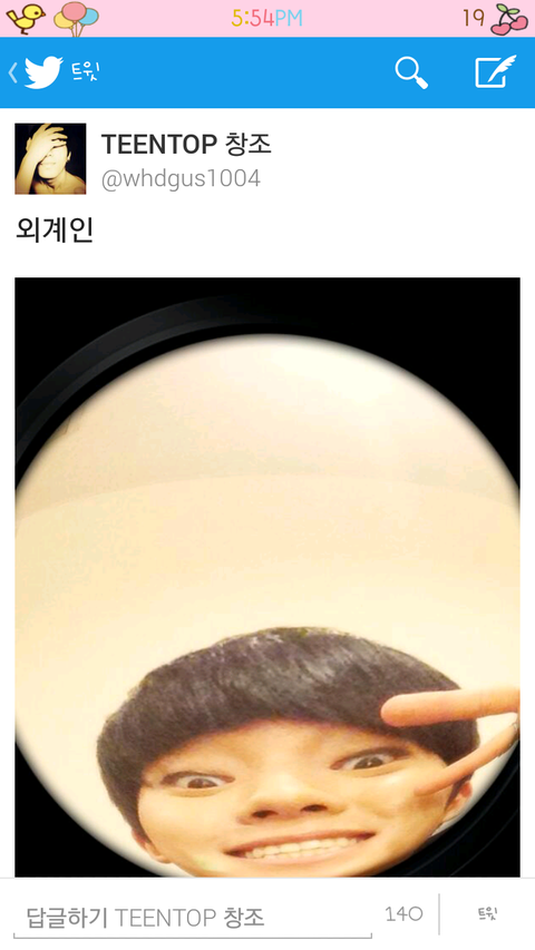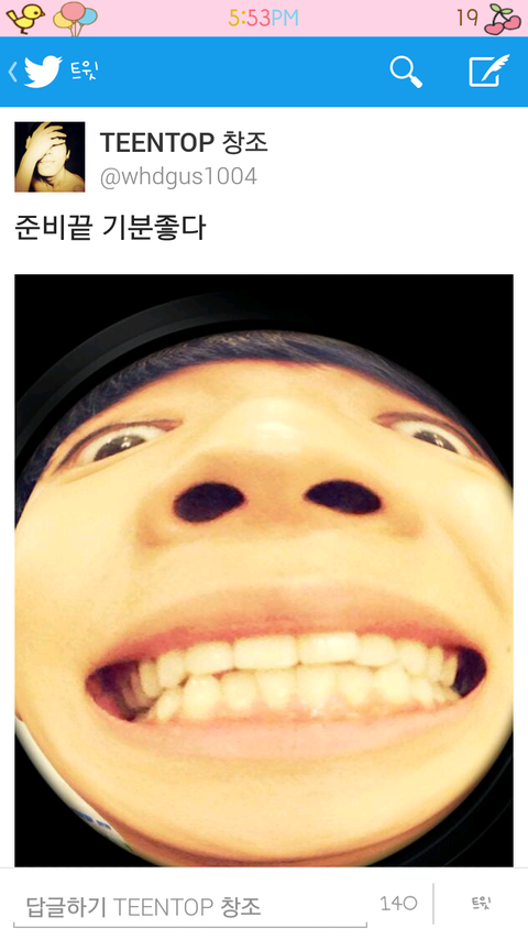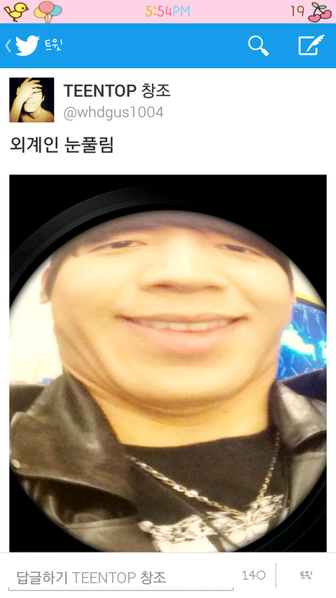 얼굴을위로하니까눈풀린외계인임ㅋㅋㅋㅋㅋㅋㅋ기분이좋았던 최창조는또트윗을올림.ㅋㅋㅋㅋㅋㅋ
