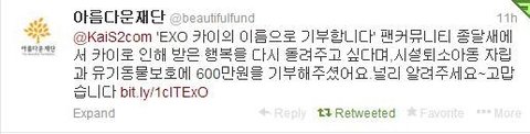 131210 오늘! 카이 이름으로 600만원을 기부했어