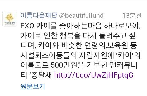 네이버에서 콩 기부해서 모으는것도 카이가 가장 많이 모였고