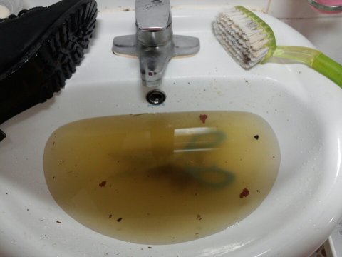 <사진설명5> 때마침 하수구가 막혀서 물이 안내려가기 시작. 물은 빠졌는데 건더기가 남음ㅋㅋㅋㅋㅋ 시발 이때부턴 그냥 해탈함.