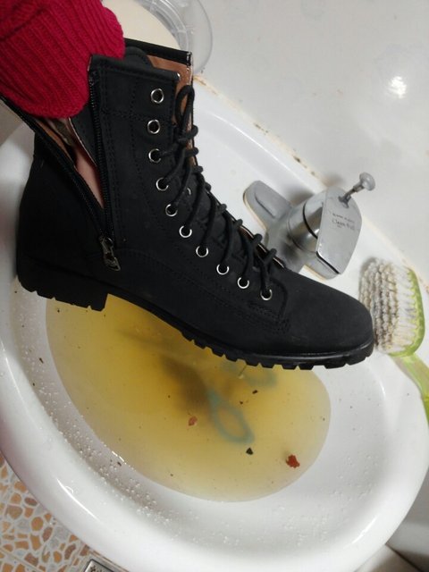 하고 신발 뙇 올려놓고 세면대 호스로 뜨끈한 물을 쏴재낌