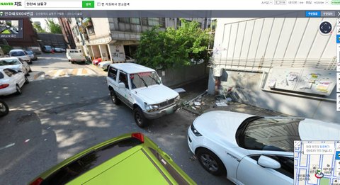 BOSCH라고 써있는 흰색 SUV차량 자리 옆임. 저기 담벼락과 으슥한 골목