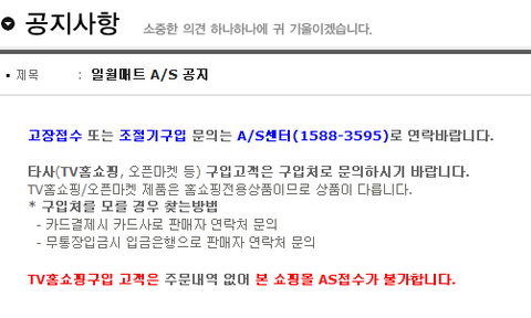 제조번호가 없기 때문에 증빙 영수증을 고장났을때 가지고 계셔야 합니다. 그리고 홈쇼핑에서 사셔도 AS안되고.....소비자는 어디서 구제를 받는건가요?