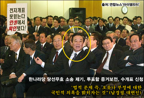 단순히 한나라당 당원이나 지지자들만 수개표하라는 시위를 벌인 것이 아닙니다. 한나라당은 당 차원에서 중앙선관위원장을 상대로 당선무효소송을 제기하기도 했습니다.