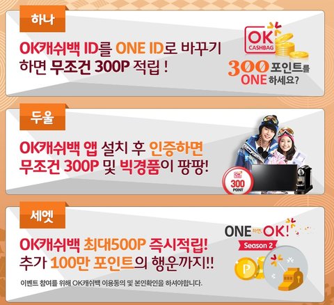 추첨을 통해 OK캐쉬백 100만 포인트도 준다던데 당첨되었으면 좋겠습니다. 100만포인트를 현금으로 환전하게되면 100만원인거 모두 아시죠? 하..