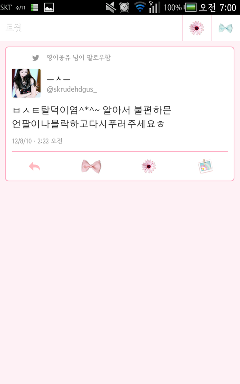 우리는 니같은 팬 필요없어요 ㅋㅋㅋㅋㅋㅋ 조카 얘네 트위터 다 들어가니까 엑소로 갈아탔더라? 진짜 받을만큼 받았다고 갈아타는건 뭔지 하긴 니들같은 무개념이 빠져나가서 다행이다 엑소팬 다크그레이로 조난 싸울때 엑소 욕하던게 누구더라? 니들도 아니였음? 그래놓고 갈아타냐 조카 싫어 다신 오지마라 우린 니들 같은 팬 싫어해 어휴 니들오빠들이 위안부 팔찌 꼈는데 왜 안뜨냐고? 양요섭이 뭘 가식이고 언플질이야 병신아 뷰티. 였음 알텐데? 큐브가 에이핑크 빼곤 언플조차 안해준다는거? 진짜 조카 한심해 니년들 잘r꺼져라 ㅉㅉ