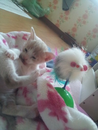 이윽고 이몸저몸 다 닦더니 또 혼자 자기침대에서 벗어나 놀러나감 .