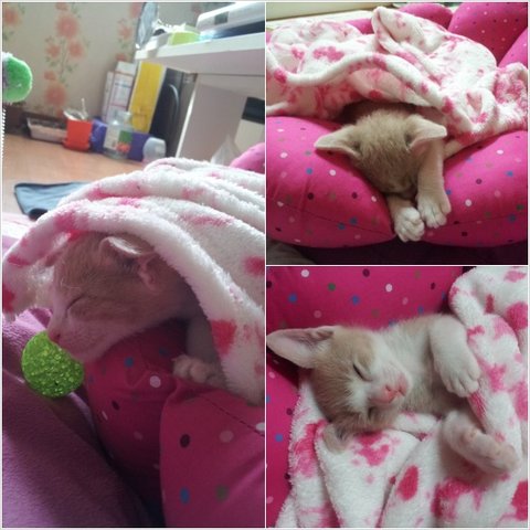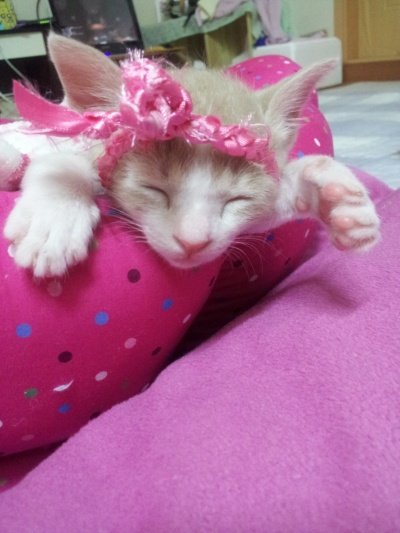 잠잘때 몰래 쓰윽 ~ 씌워 봤어요