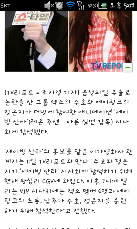 오늘 세이빙 산타 시사회 있는데 거기에 엑소 6명이응원온데
