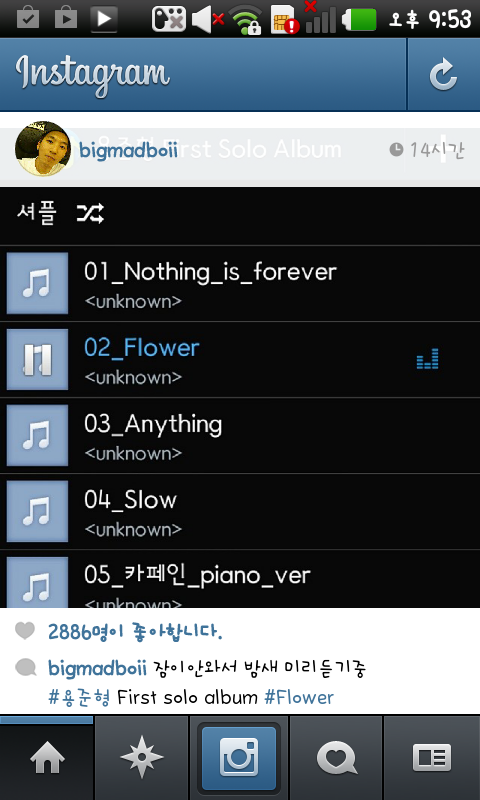 부러워요ㅠㅠㅠㅠ나도 잠이 않오긴한데.....하긴 저노래들 들으면 더 못자겠지......