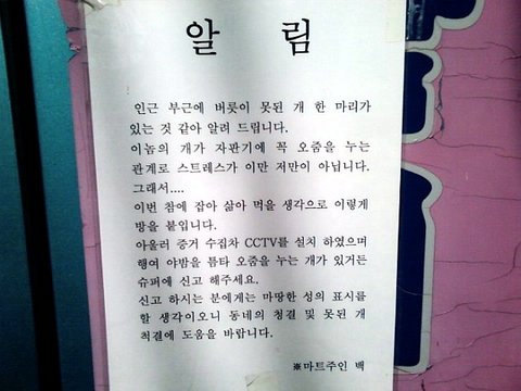 우리 동네 마트 앞 자판기에 붙여진 방~ㅋㅋㅋ