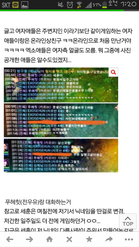 일단이게지금톡에올라와잇는채팅인데
