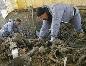 그 중 몇몇은 살아있었다고 말하였다. 항공 사진과 발굴을 통해 이 지역 근처에 집단 매장터가 발견되었다.