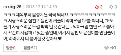 이번에는 윤진이랑 삼천포랑 같이 화장품 광고 찍었다고 해서 봤는데