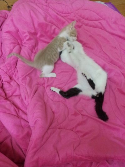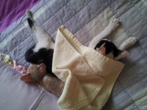한판싸우고 다시 친해져 같이 누워있답니다.~