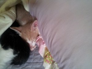 미호랑 베게사이에 낑겨서 자는중 그러다가