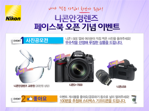 니콘 안경렌즈 페이스북 오픈 기념 이벤트가 진행되네요~