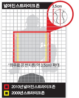 KBO는 2010시즌에 스트라이크존 좌우폭을 공 0.5개씩 확장하겠다고 공표한 바 있다. 그런데 문제가 있었다. 적용이 불가능했기 때문이다. 프로야구 투수의 공은 빠르고 변화무쌍하다. 심판은 인간이며, 인간의 눈깔로 가상 라인을 설정하면 오류가 발생한다.