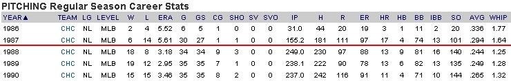 1986년 만 20세에 (확장 엔트리때) 메이저리그 커리어를 시작한 그렉 매덕스는 1987년에 6승 14패 155.2이닝 5.61 방어율로 뚜렷한 한계를 드러냈다. 그런 투수가 1988년에 갑자기 진화하여 메이저리그 현대 야구사 최고 투수 반열에 오른 것이다.