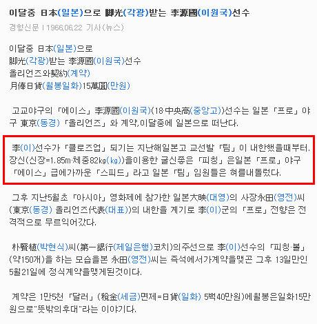 이 가능성은 따질 필요도 없다. 왜냐하면 노모 히데오 이전의 일본 대표팀 주력 투수들은 완성도 높은 기교파 일색이었고 이원국, 계형철의 사례에서 알 수 있듯이 NPB는 강속구 투수 스카웃에 국적도 따지지 않았다는 명백한 사실이 존재하기 때문이다.
