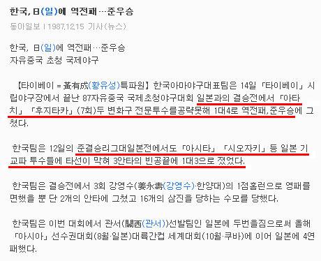 76 ~ 84년까지 세계 메이저 야구대회에서 일본 대표팀 주력 투수들은 기교파 일색이었고, 85 ~ 87년 대회는 확인을 못했지만 87년 12월에 있었던 대만 초청 대회에서도 일본 대표팀 주력 투수들은 기교파 일색이었다는 사실을 확인할 수 있다.